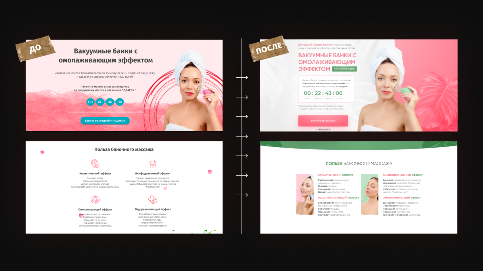 Лендинг для продукта «Вакуумные банки». Пример: до и после