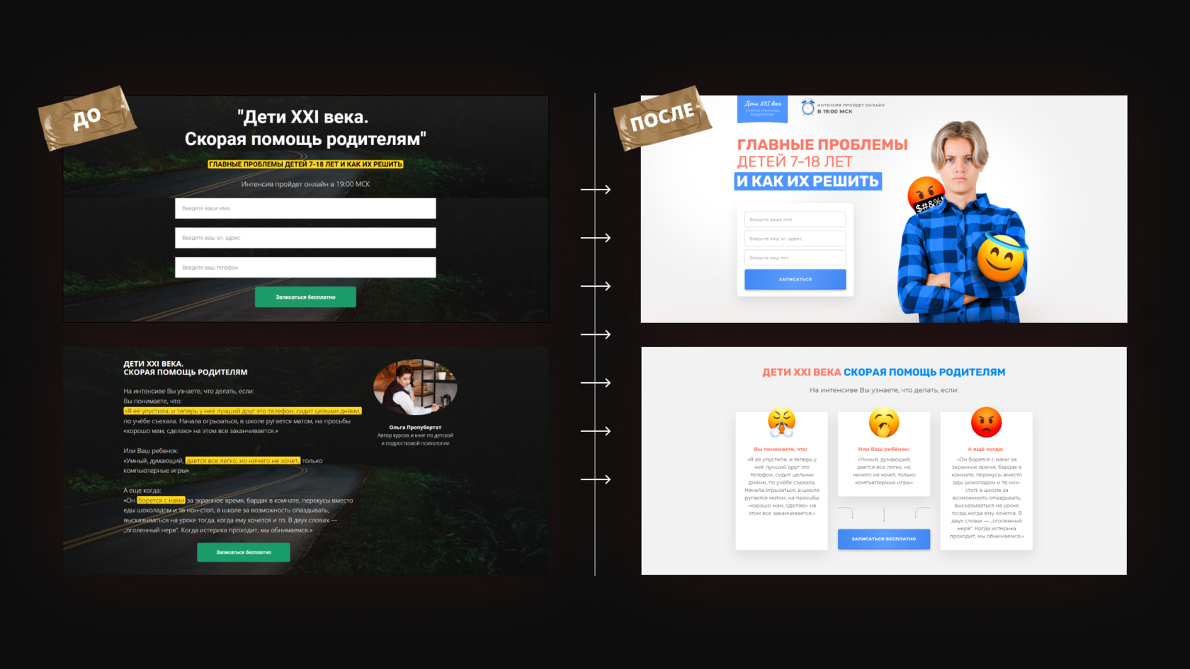 Лендинг для интенсива проекта «Дети XXI века». Пример: до и после