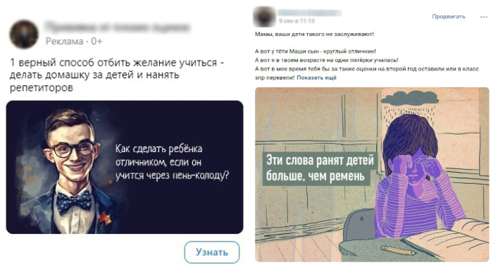 Наилучшая конверсия — у длинных сторителлингов. Причем, аудитории родителей школьников заходят истории с провокационными триггерными заголовками: