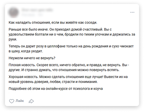 Эти тексты читались как откровенные личные дневники и прокатывались по болям целевой аудитории, как каток по тонкому льду — неумолимо, глубоко, оставляя после себя сильный след. Один из таких постов вы видите ниже.