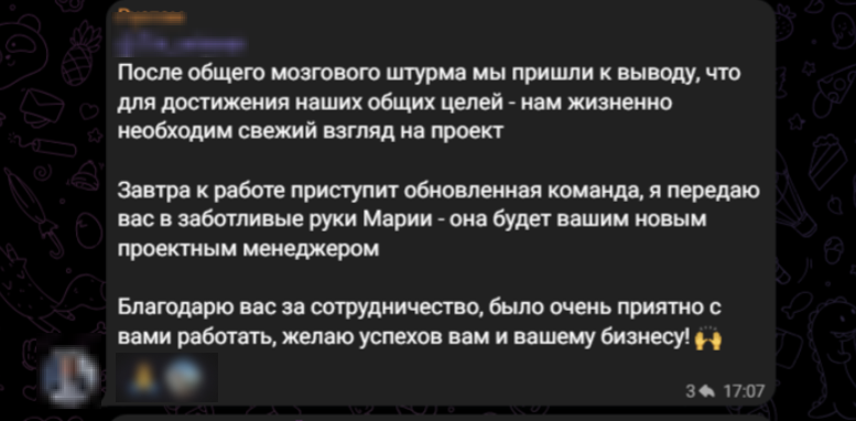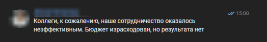 Когда в рекламном кабинете остались последние 45 000 рублей, мы получили сообщение от клиента с пожеланием прервать сотрудничество.