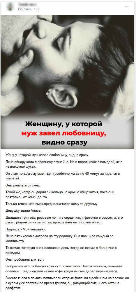 Третий шаг — непосредственная работа над новыми креативами. Мы отказались от старых офферов и подготовили серию эмоциональных нативных сторителлингов, которые читались как личные дневники.